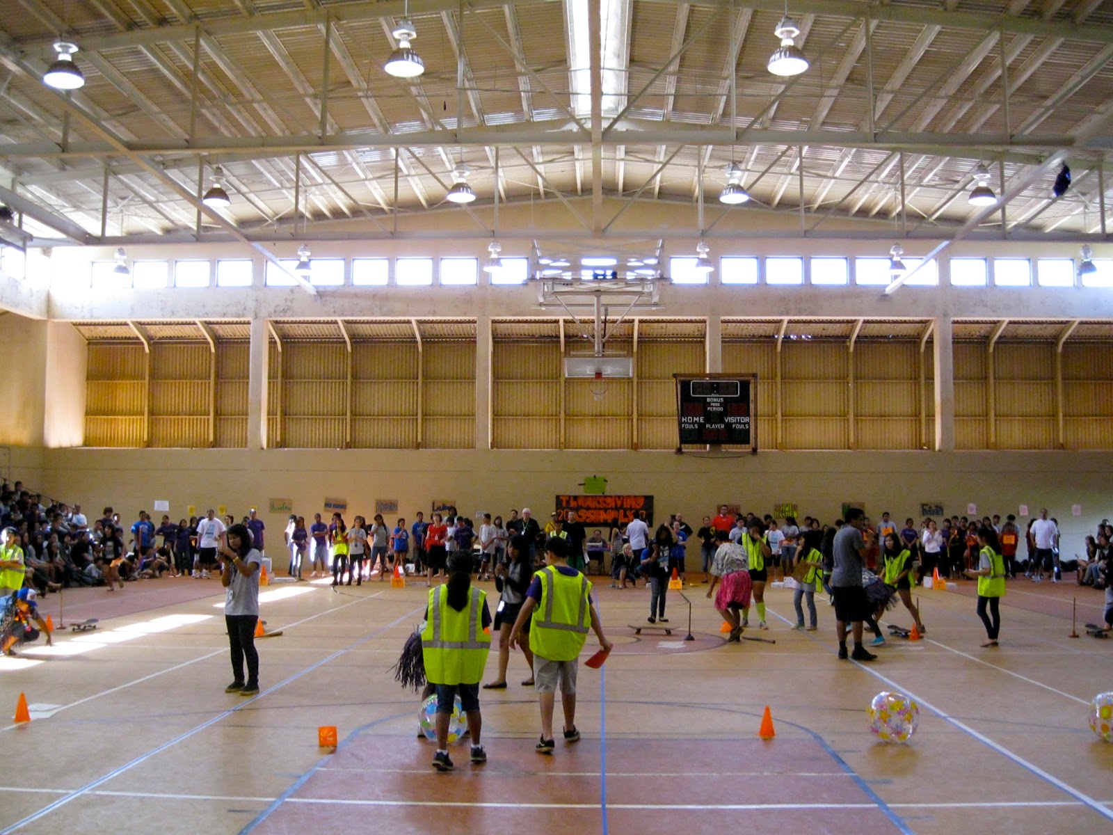 Boy, I'm stuffed! Not from all the food, but from all the fun and especially from the 2010 Turkey Trot! This old Highlands tradition was resurrected and brought back better than ever at our 2010 Thanksgiving Assembly! For the turkey trot, we had an obstacle course consisting of 5 challenges. The Tourist Turkey had the contestants put on an entire outfit that made them look like a tourist. The next was the Skateboard Turkey where contestants had to paddle on a skateboard with a plunger to their next challenge. Next was the Dizzy Turkey challenge where contestants put their head on a baseball bat and spin around 5 times. Next, was the Tile Walk Turkey where contestants used 2 tiles to get across to the next challenge. Finally, the Waddle Turkey had the contestants put a beach ball between their legs and waddle to the end of their relay, where they will tag off with their partners. The partner at the end had to then do the entire course in reverse in order to finish.